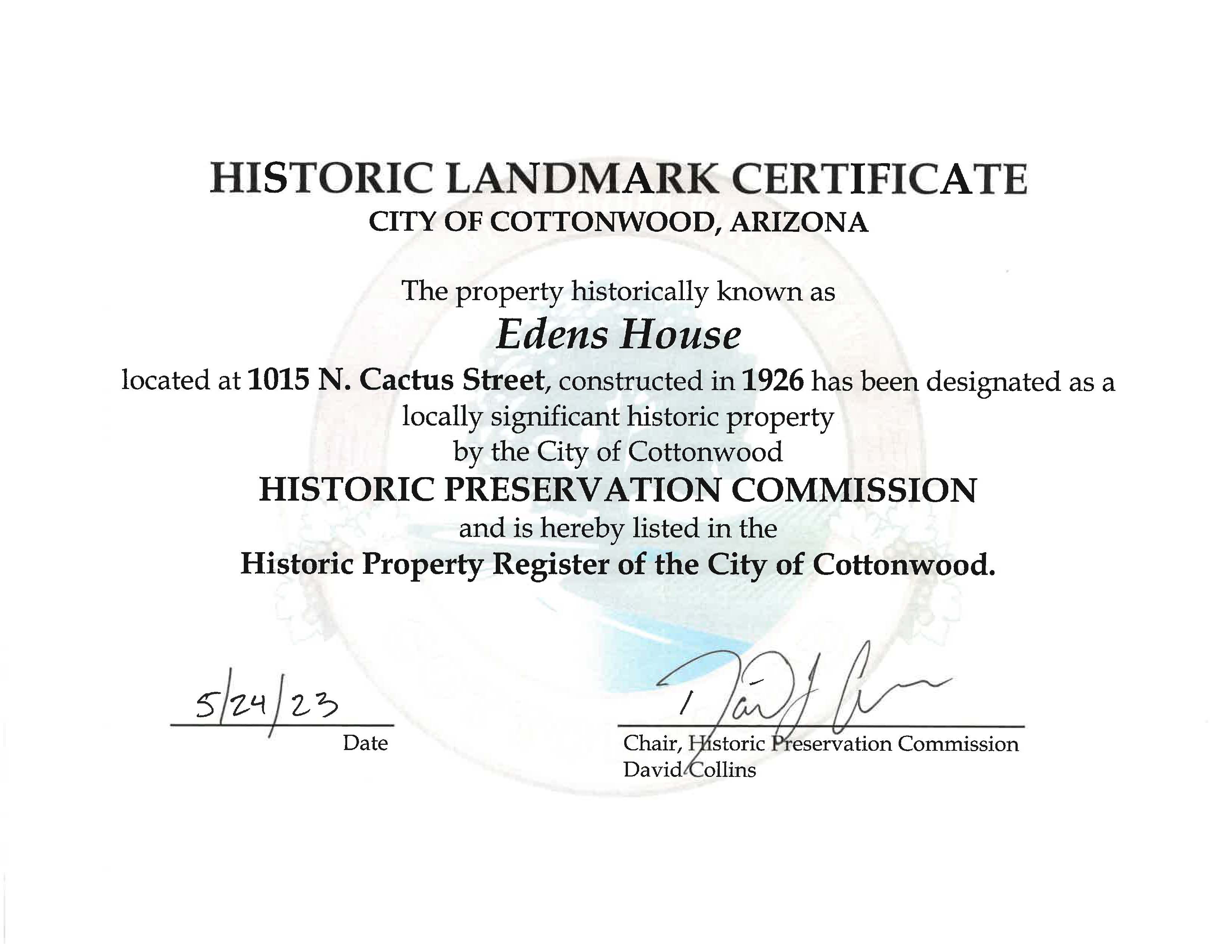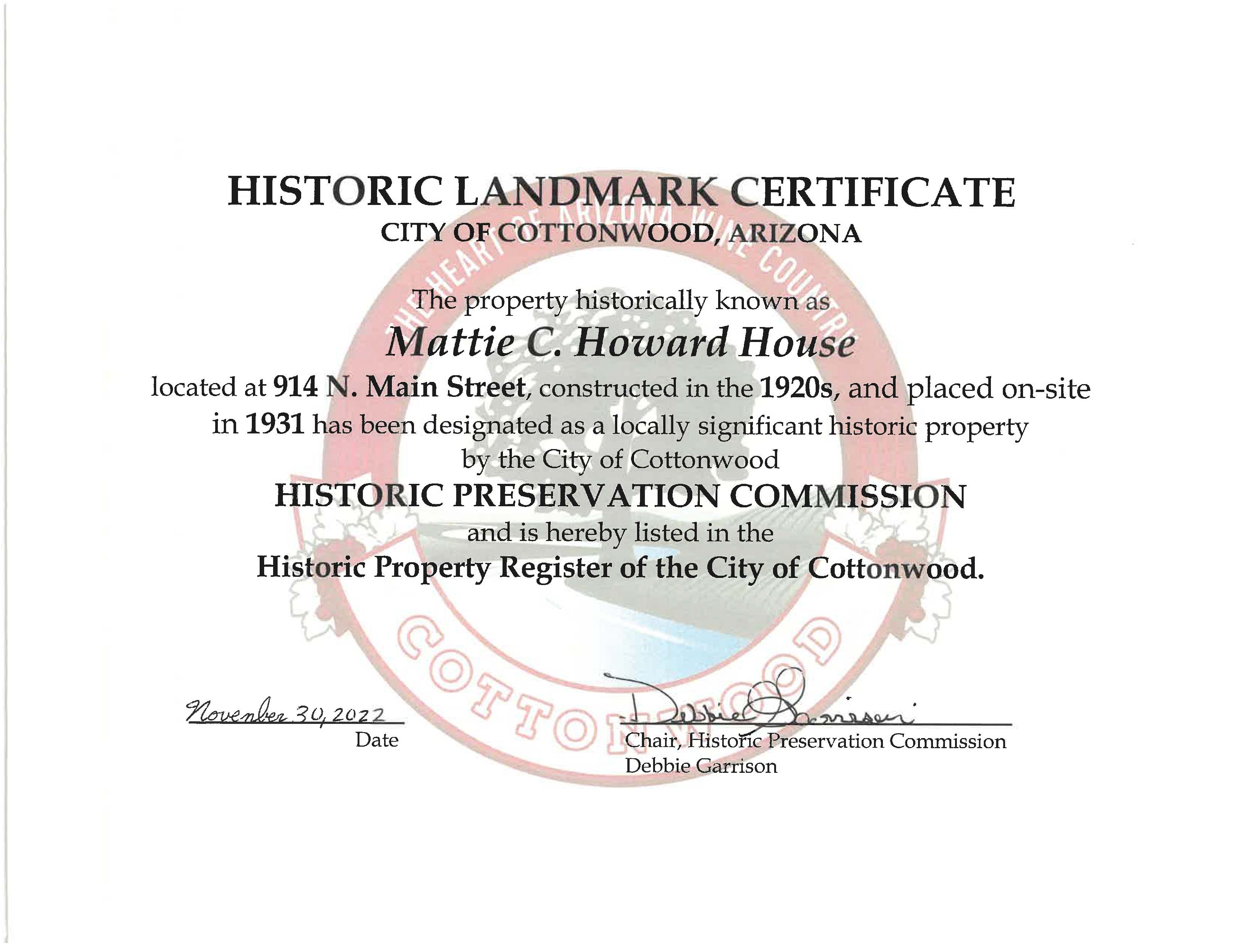 A. Advise the City Council on matters relating to historic preservation, including the making of plans and policies for the identification, evaluation, protection, preservation, and enhancement of historic structures, historic landmarks and historic districts in the City of Cottonwood.