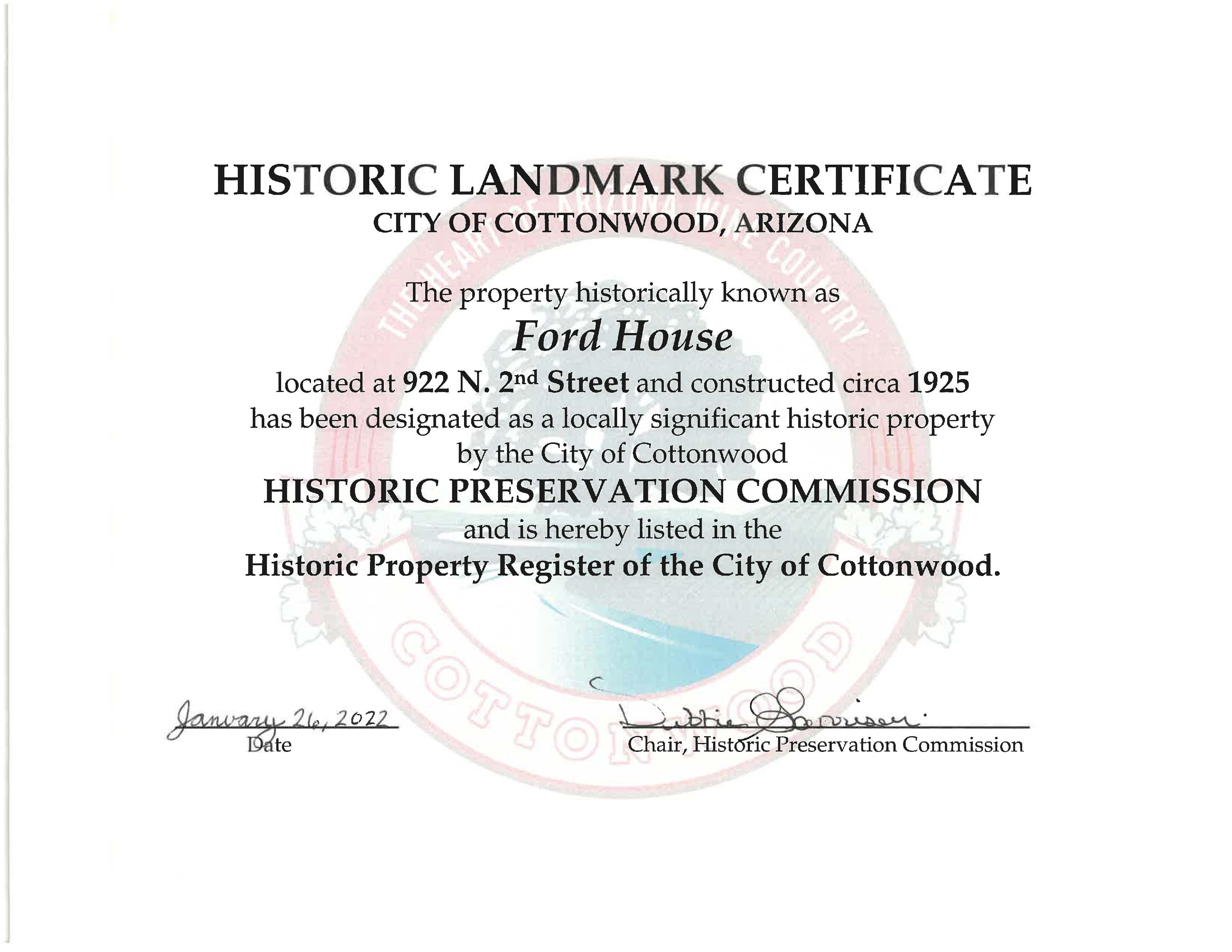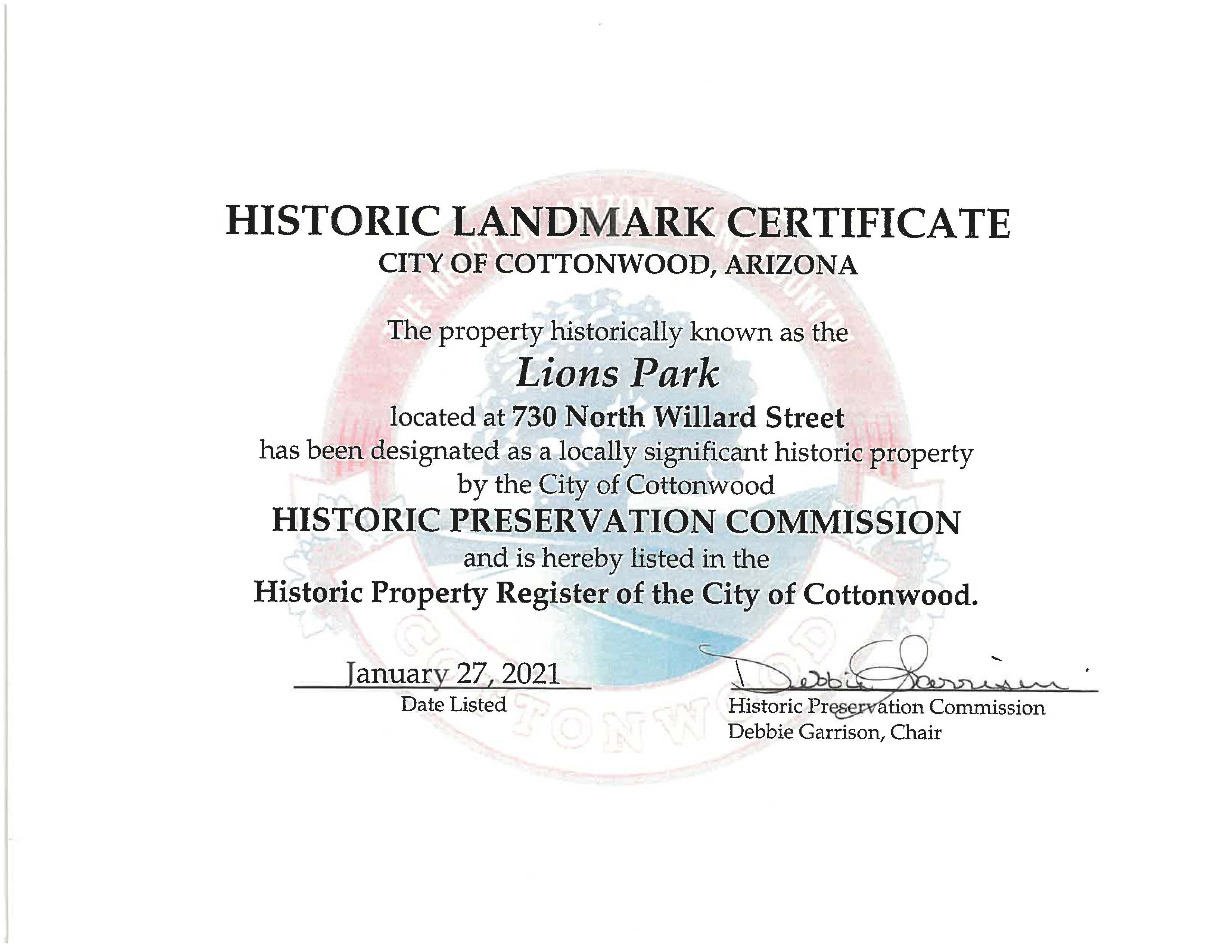 D. Create a historic preservation plan for the City of Cottonwood, establish criteria and procedures for review of development within historic districts, maintain and update a local historic properties inventory, and review and propose sites and structures for designation as historic landmarks and for listing on the National Register of Historic Places.